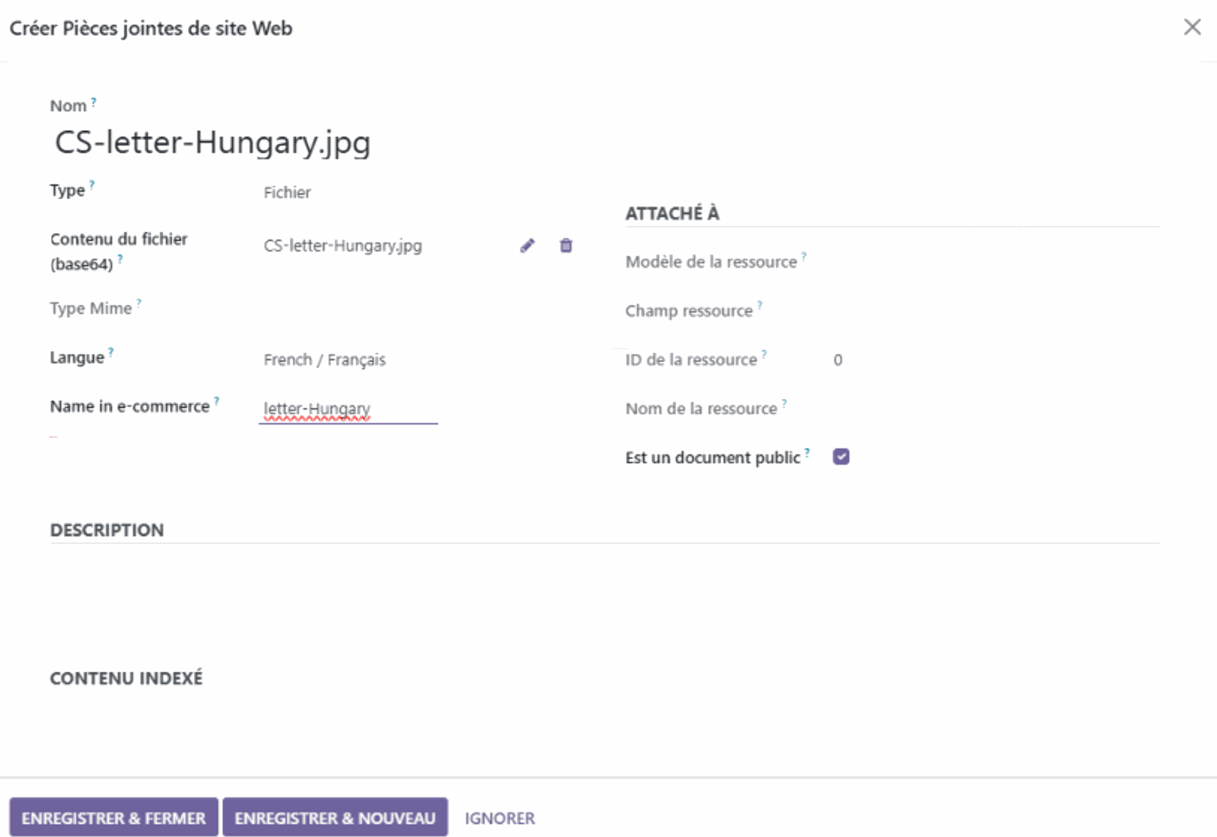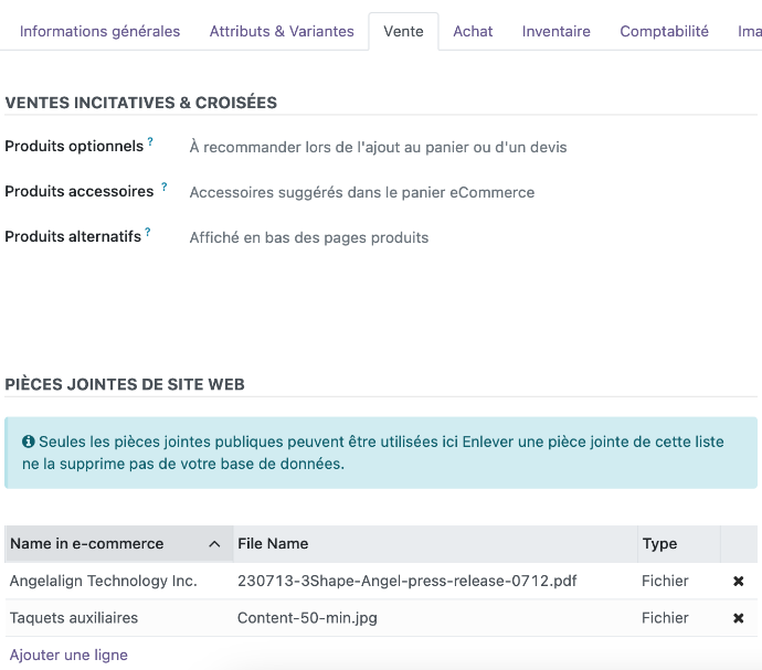 • Name in e-commerce : nom du fichier visible sur le site e-commerce.